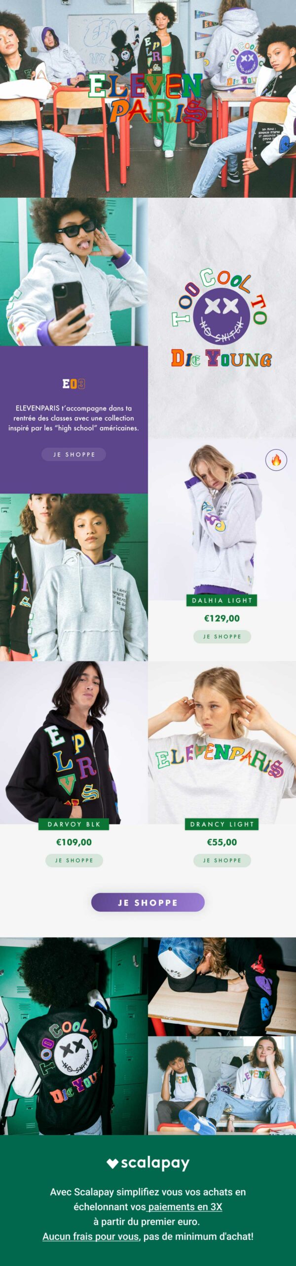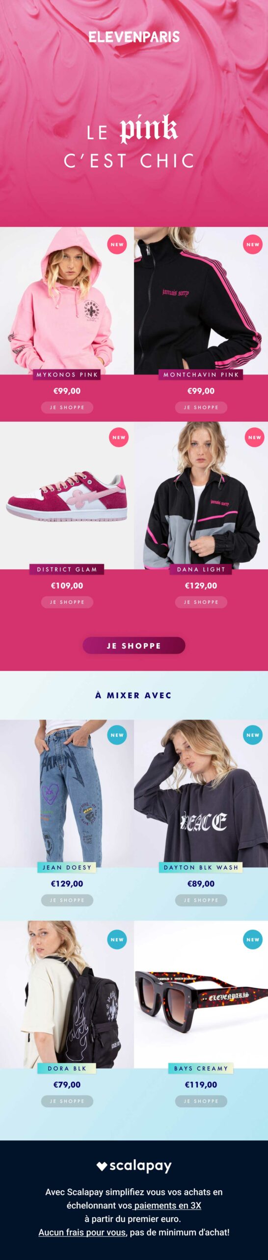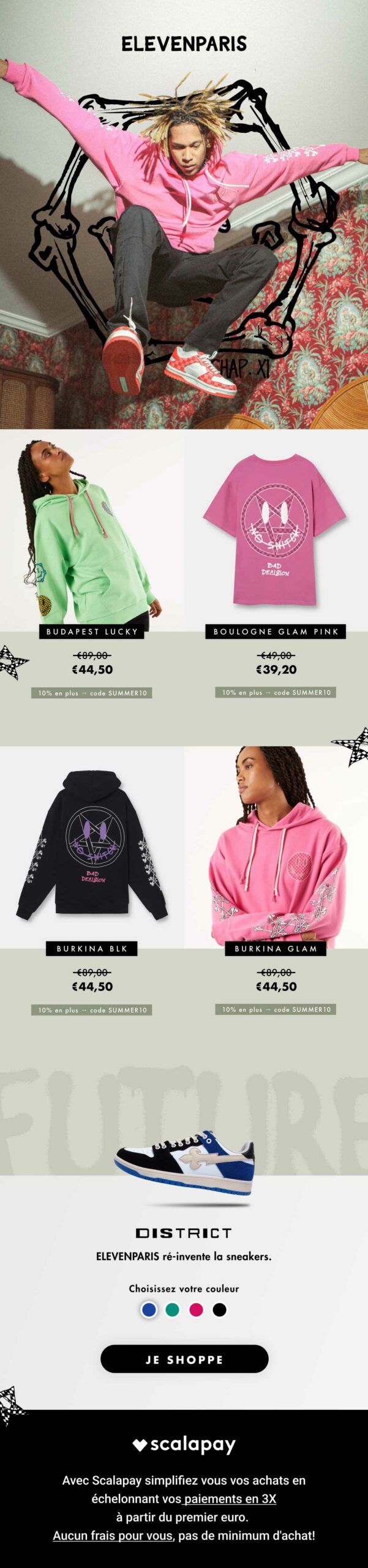 Samebrain a accompagné Eleven Paris dans la mise en place et le design de ses newsletters afin de renforcer le lien entre la marque et sa communauté. Nous avons assuré la direction artistique et la conception graphique des campagnes, en respectant l’univers décalé et audacieux de la marque tout en optimisant l’efficacité visuelle et l’impact commercial de chaque envoi.